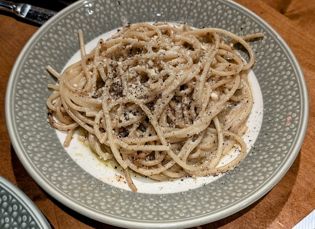 We came by for dinner after an event on a Wednesday afternoon. When we walked in, we were told they were out of pizza dough before we were seated and decided to stay and enjoy dinner anyways as we were looking at the pastas. As we were seated we were greeted by Brian who was our server for the evening. He was a delight from beginning to end, making recommendations, promptly getting us things as he helped all of his other tables going in and out. We started with the squash blossoms and the arinchini both of which were great. I will say for the size of the squash blossom I did wish that there was more filling in them, but it was night and crispy and full of flavor. We also got the ceasar salad that tasted grilled and left in wedges. The presentation was stunning and with the dressing it was great. For our entrees my husband got the paradelle short rib bolognes, and it was delish! I ended up with the truffle tortilini and had no regrets either. The past was cook great and the flavors were all present. I think the only downside of our experience was that it seemed as they were running out of a lot of things. From beer to dishes, to pizza dough of which was a good chuck of their menu. But overall we had a great time! P.s if you're a wine member you can totally claim a bottle to enjoy with your meal. We tried to give Brian our number in the account but not sure what happened there. We were able to claim some bottles after dinner to bring home to enjoy though.